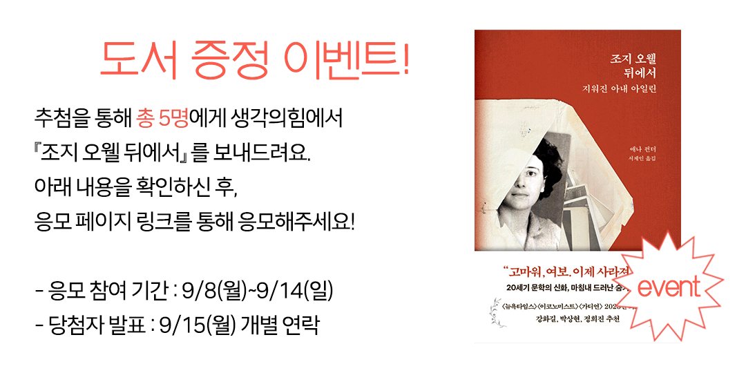 애나 펀더는 조지 오웰의 작품들을 탐독해오면서도 발견하지 못했던 인물, 아일린의 존재를 처음 알게 됩니다. 오웰의 삶 속에서 그는 중요하지 않는 인물처럼 (여러 평전을 통해) 그려졌지만 진실은 그렇지 않았다는 걸, 애나는 곧 알게 됩니다. "옥스퍼드에서 문학을 전공"하고, "유머가 넘치고, 재능 있는 여성"이었던 아일린, "스페인 내전에 뛰어들어 오웰의 목숨을 구하기도 했"던 아일린, "《동물농장》을 장편소설로 기획하고, 매일 밤 오웰과 함께 작업을 하며 자신의 재치와 통찰을 그 소설의 캐릭터들 속에 녹여 넣었던" 아일린... 그러나 온데간데 없이 지워져버렸던 아일린... 《조지 오웰 뒤에서 - 지워진 아내 아일린》은 아일린의 노동과 작업을 발굴하여 조지 오웰 뒤가 아닌 그 옆에, 어쩌면 그 앞에 세워두는 일인 동시에 해방을 향해 나아가는 작업입니다. "도덕적으로 낡고 허약한, 정당성이 없는 권력 체계"인 가부장제를 부수고 불공평한 노동 환경을 바꿔버리는 일. 애나 펀더의 이러한 의도를 염두에 두고 이 책을 읽는다면 여러분 역시 변화를 만드는데 한 몫을 할 수 있을지도 모릅니다. |